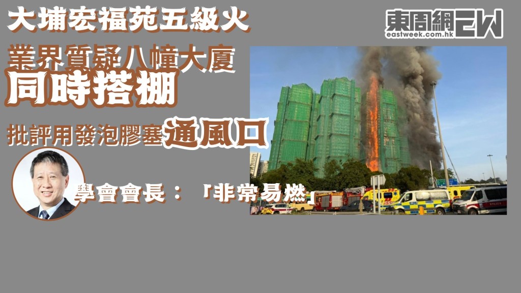 大埔宏福苑五級火 |業界質疑八幢大廈同時搭棚 批評用發泡膠塞通風口 學會會長:「非常易燃」