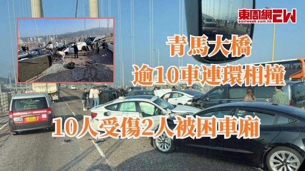 青馬大橋逾10車連環相撞 10人受傷2人被困車廂