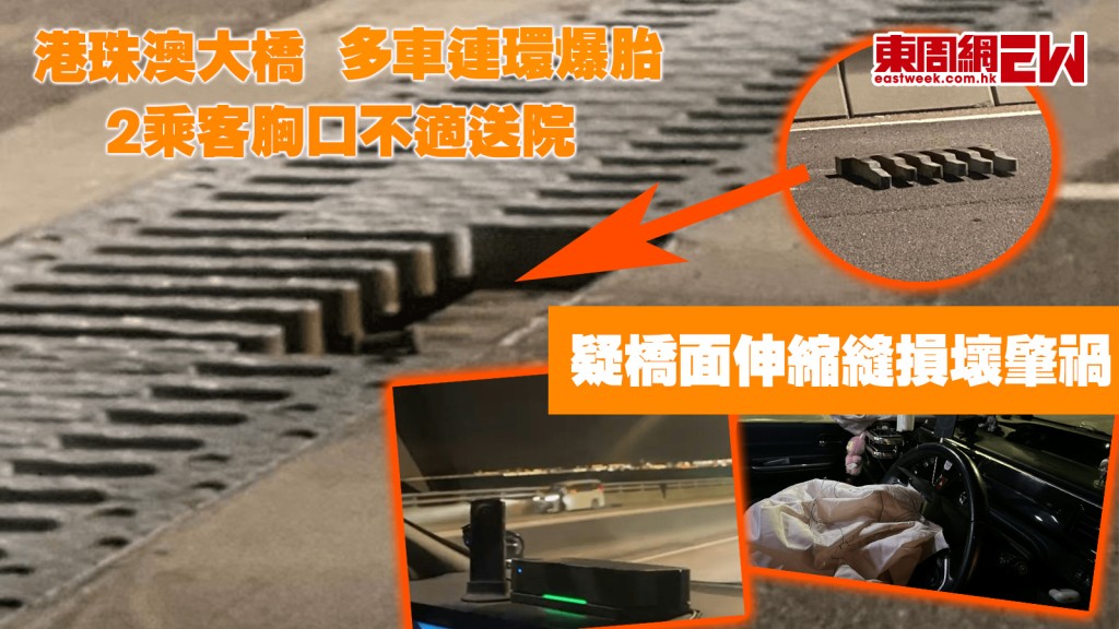 港珠澳大橋|多車連環爆胎 2乘客胸口不適送院 疑橋面伸縮縫損壞肇禍