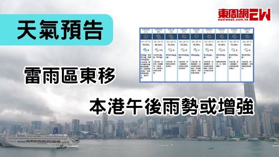 天氣預告 | 雷雨區東移 本港午後雨勢或增強