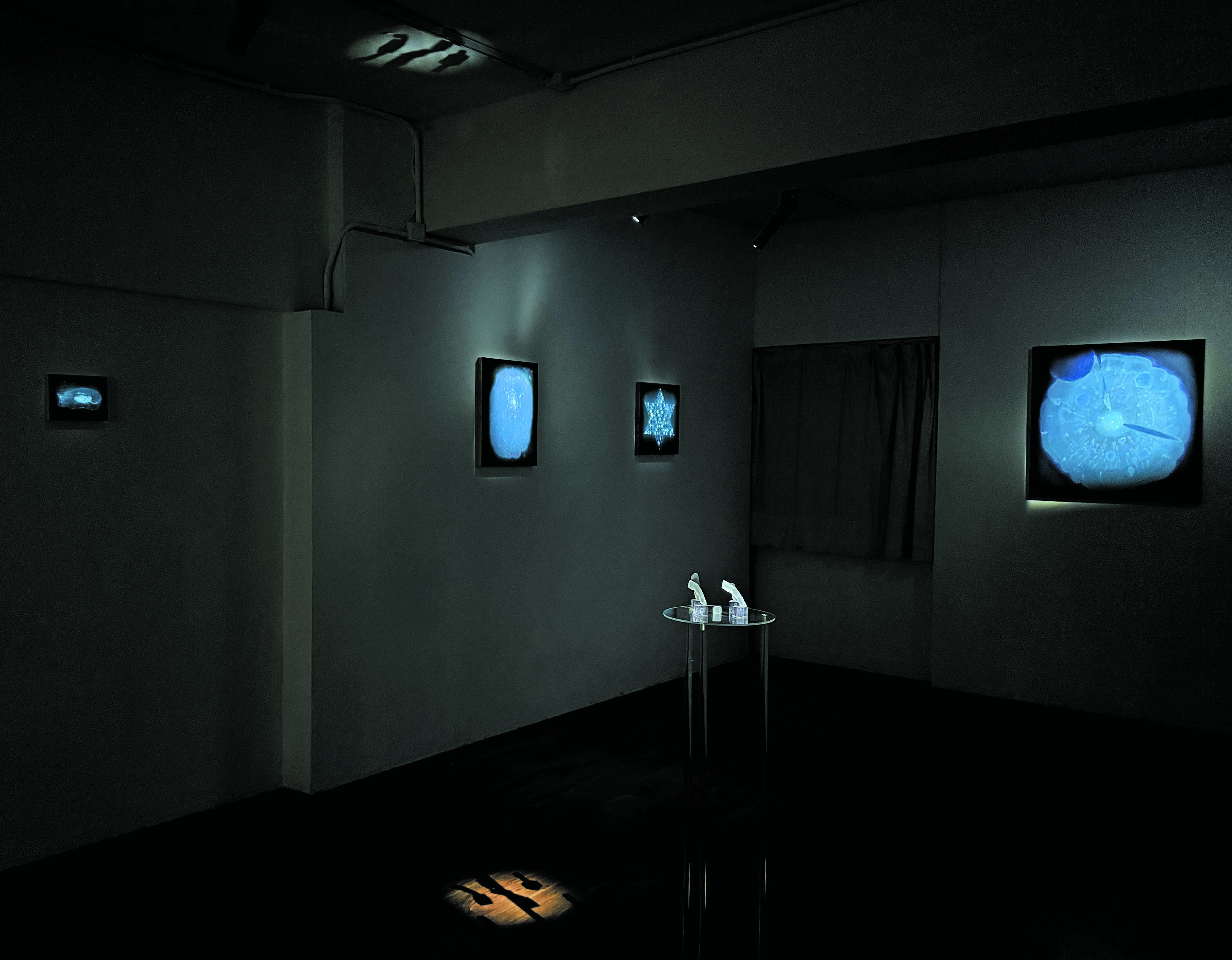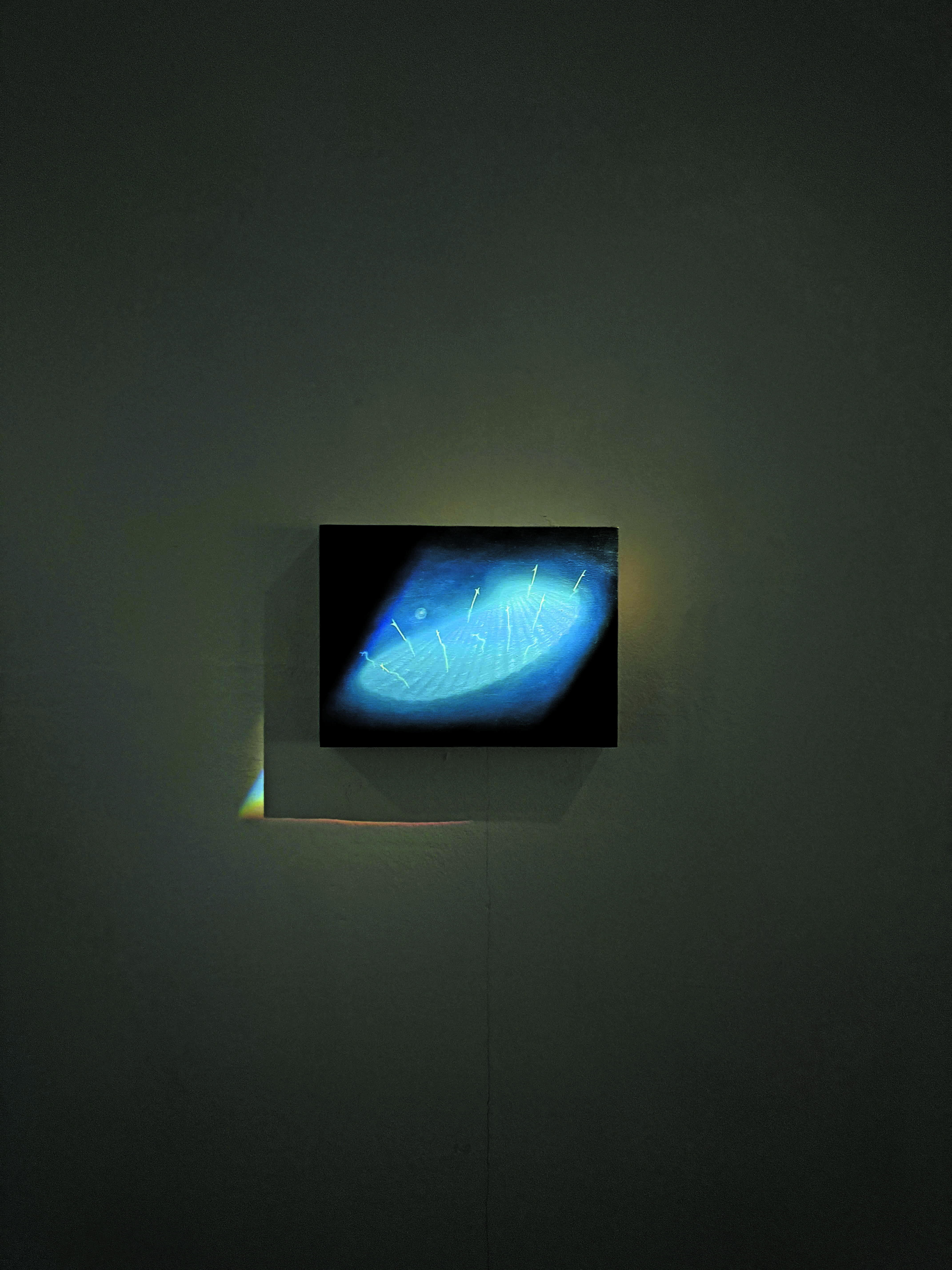 藝術家李芷淇在艺鵠藝術空間舉辦個人展覽「心果」,透過主要以藍色為主調的油彩作品,探討自我定義與被塑造之間的過程:「這裏由一股更高的存在主宰着因果,引領或控制自己到未定或已定的一方。我們嘗試看透、拆解,將可知和不可知握在手中。窺視生命軌跡的欲望、探查爪痕的主、追求理型的焦慮、在不可逆時空埋下未來的柳;是人終能用第三稱看透一切,還是依然是心像中的鯉?」空間內的一切都被凝視着,幽暗的環境和集中的燈光讓人聚焦於作品自身,就如記憶一般以斷續的片段組成。