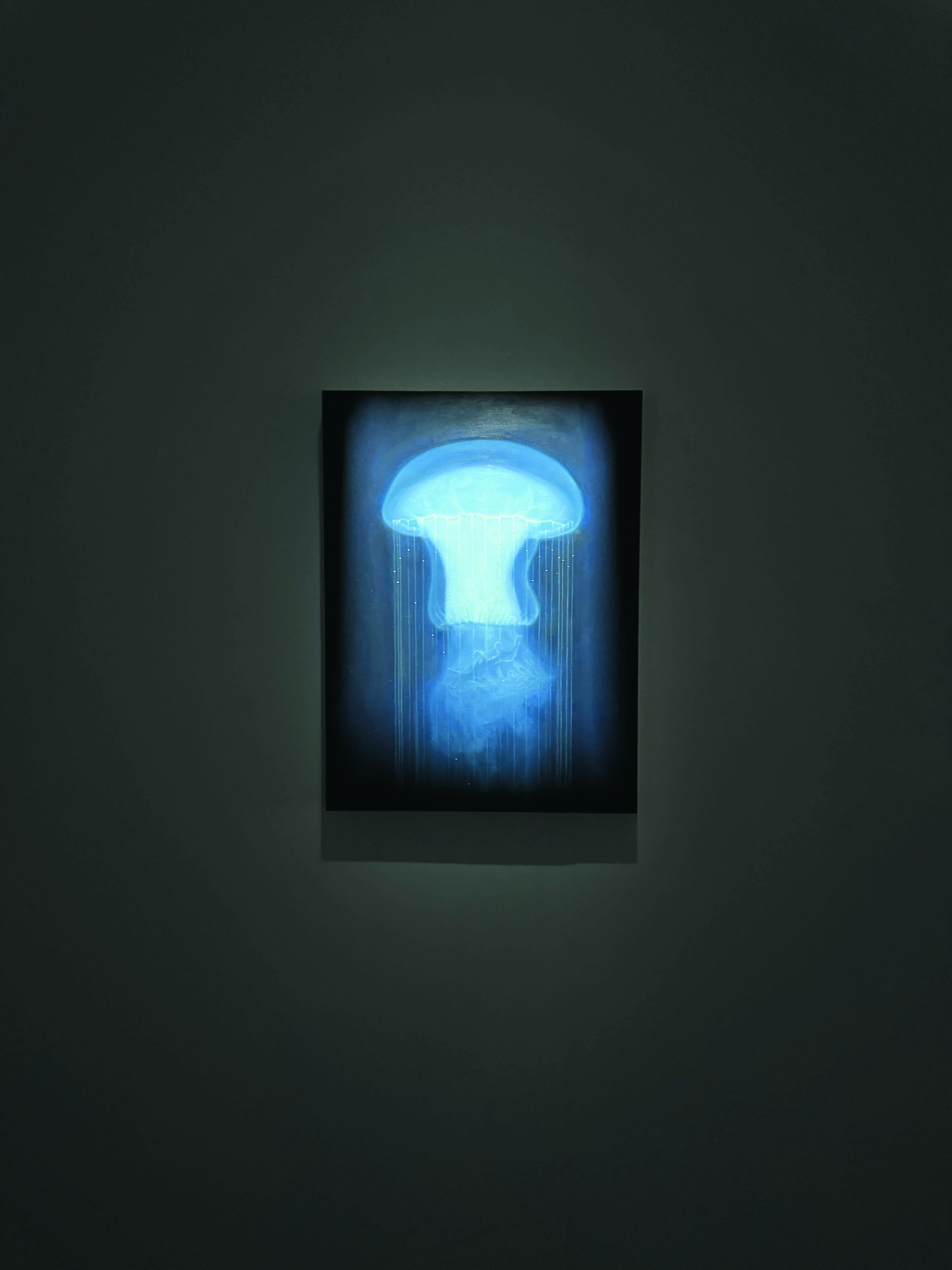 《Neglected Pearl》描繪未知的條狀生物正從貝殼中逃離的情景,被取出的珍珠讓貝殼成為一個空洞的存在。畫作四周透現出的幻彩光影折射,彷彿回應珍珠光芒的消逝,傾瀉着那一些曾經擁有的瑰麗。李芷淇的作品以各種通透的形式描繪不同事物,如玻璃彈珠、海洋生物、人體骨骼、香檳杯與生物細胞等,透徹地映照內心潛藏的真理與情緒—在漆黑的夜空中覷見一直被忽略的細節。