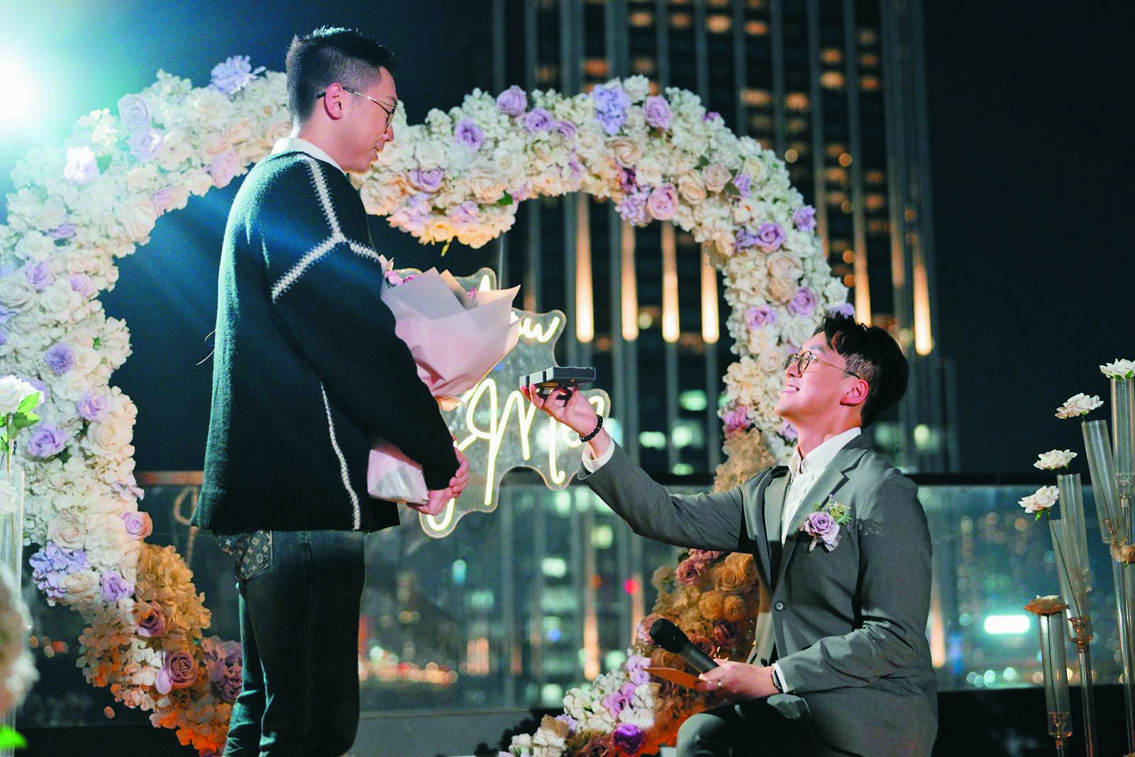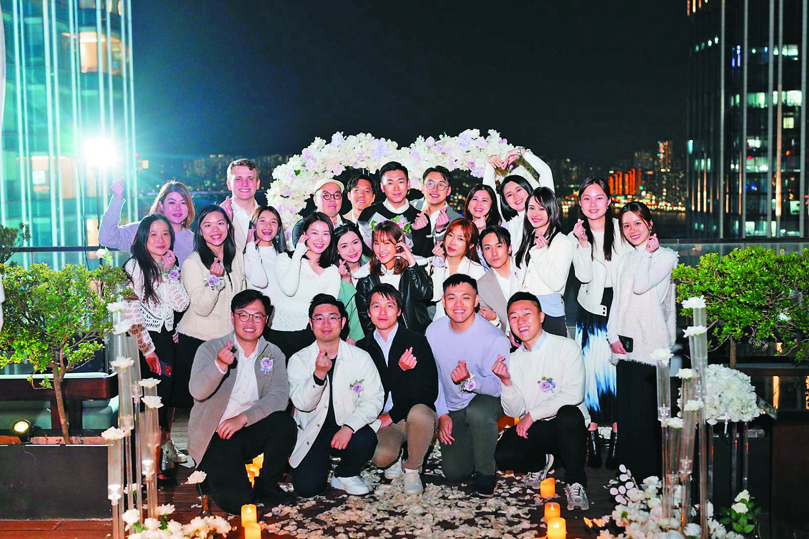 我不認識書君的另一半,只知叫Steven。他原來約了一群好友,剛巧在我喜歡的其中一家餐廳,突然在鮮花造的心形背景下,在眾人面前拿着戒指下跪求婚,事前保密功夫做足,很有儀式感及誠意。
