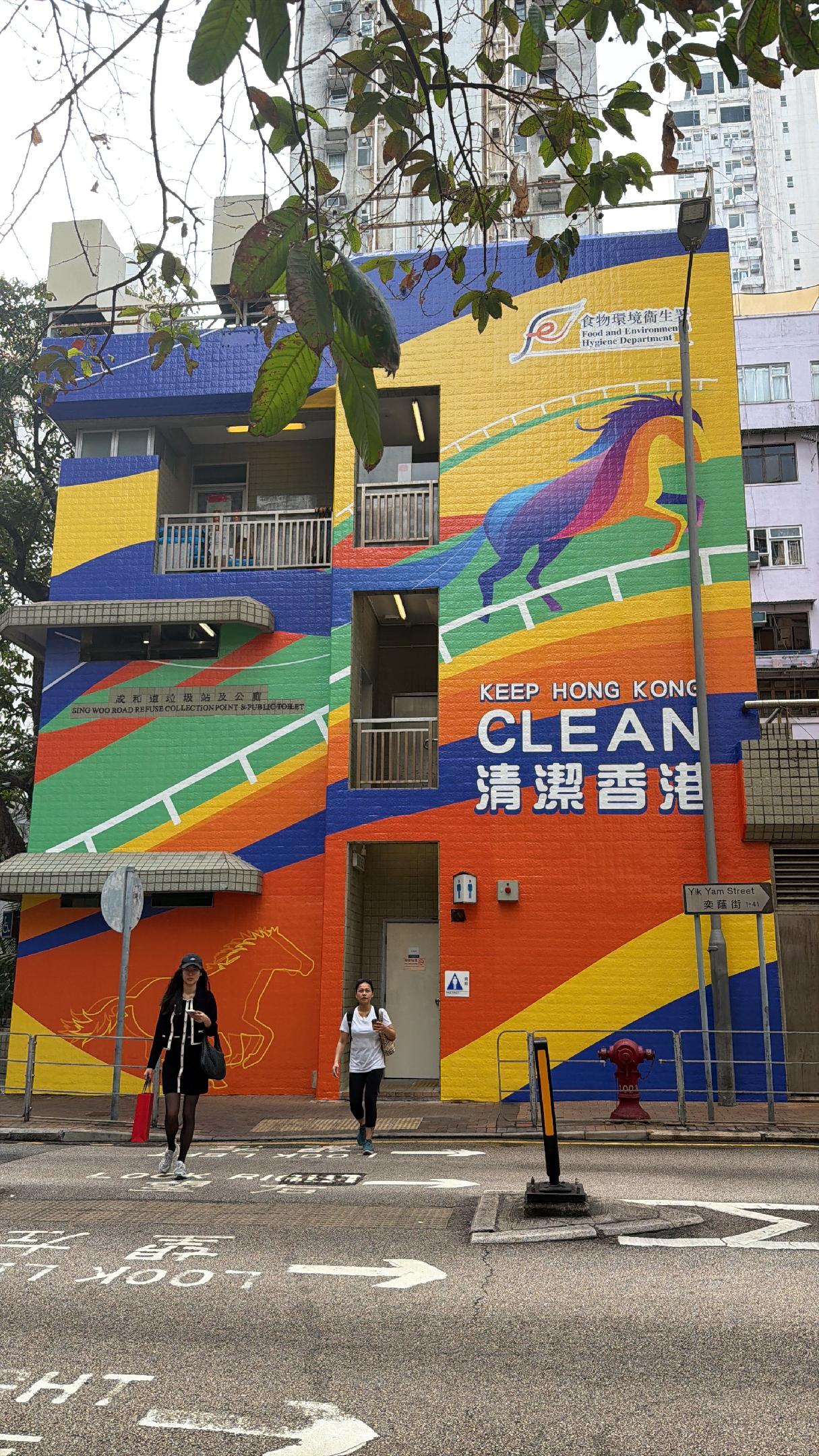 近日經過跑馬地道旁的公共廁所,眼前一亮!隔夜之間,它徹底換新顏,變身色彩繽紛,外牆特別繪上馬匹圖案,不單呼應「跑馬地」地名,更致敬賽馬文化。