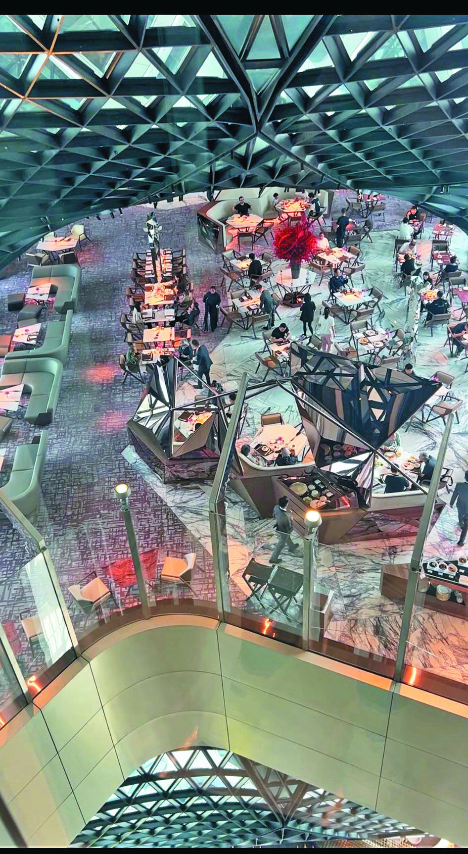 雖然扎哈已經過身9年,我相信90年之後,她的這幢酒店建築,仍然能令後人哇哇聲,就如同這酒店今天怎樣驚艷我。已經旅遊半世紀的我自詡住過數百間酒店,幾乎所有的5星級酒店品牌都曾有過肌膚之親。但一踏進這位建築女王的天馬傑作,仍然忍不住要嘖嘖稱奇。在大堂一抬頭,40米高挑高的中庭,兩側是蜂巢狀的後打燈立體牆身,遠比甚麼巨型水晶吊燈或名畫耐看,兩旁各有6部透明觀光電梯。