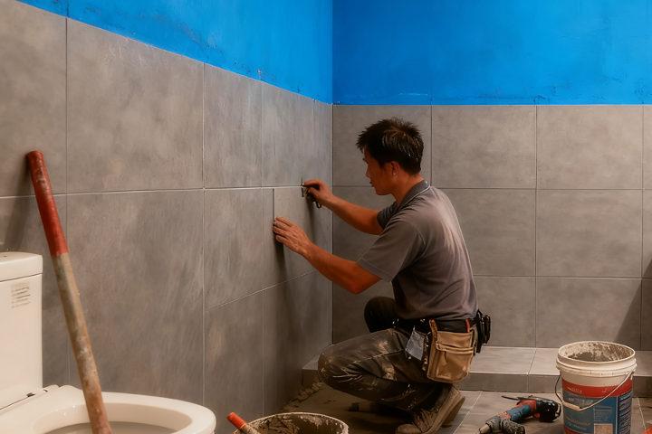 2. 鋪磚注意事項:鋪瓷磚時,水泥砂漿的水分不宜過多,且避免用力敲擊瓷磚 —— 若需在牆面打孔(如安裝花灑架、廚房掛件),需先用探測儀確認無水管後再打孔,打孔後用防水膠填補縫隙;