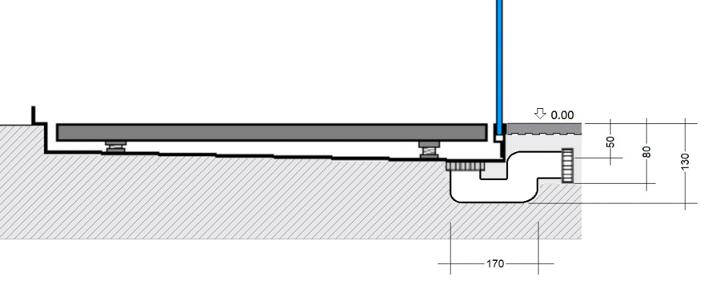 淋浴間與浴室地台需要足夠的高度並斜水 (科水)