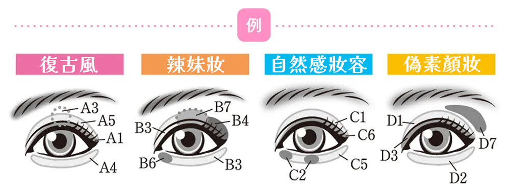 重現泡沫經濟時代的華麗印象!明亮鮮豔的色彩,適合大面積塗抹於眼瞼,打造存在感十足的突出眼妝,復古又迷人。