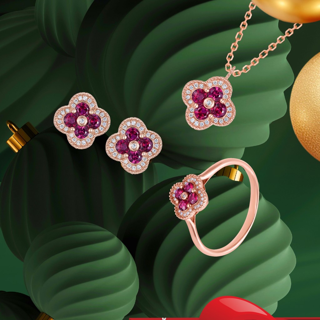 這款紅寶石、密鑲鑽石及18K玫瑰金組合而成的《四葉草》系列,以又名幸運草的四葉草作設計靈感,每瓣葉子分別象徵希望、信心、愛情和幸運,最適合送給你心中最在乎的人。