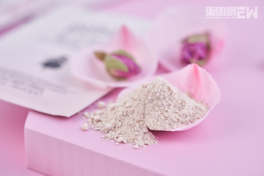 「好多人搽完粉底後睇上去又乾仲起晒紋,原因係冬天缺水嘅死皮變得更粗糙,所以化妝前要先去死皮。冬天用普通磨砂膏會太強,所以要選用較温和嘅潔面粉去死皮,啲粉就會貼好多。」並推介gülsha晨露純玫瑰潔面粉,「因為gulsha用最貴嘅大馬士革玫瑰,同埋冇混其它油,係真材實料。而用玫瑰味除咗滋潤,仲可以均勻膚色同抗菌,加上天然香味好紓緩。」