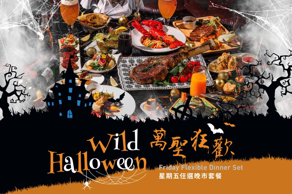蟹肉南瓜湯、萬聖節竹炭泡芙、萬聖節朱古力布朗尼、萬聖節南瓜撻、萬聖節開心果紅莓慕斯蛋糕、萬聖節紅莓啫喱、窩夫、朱古力噴泉