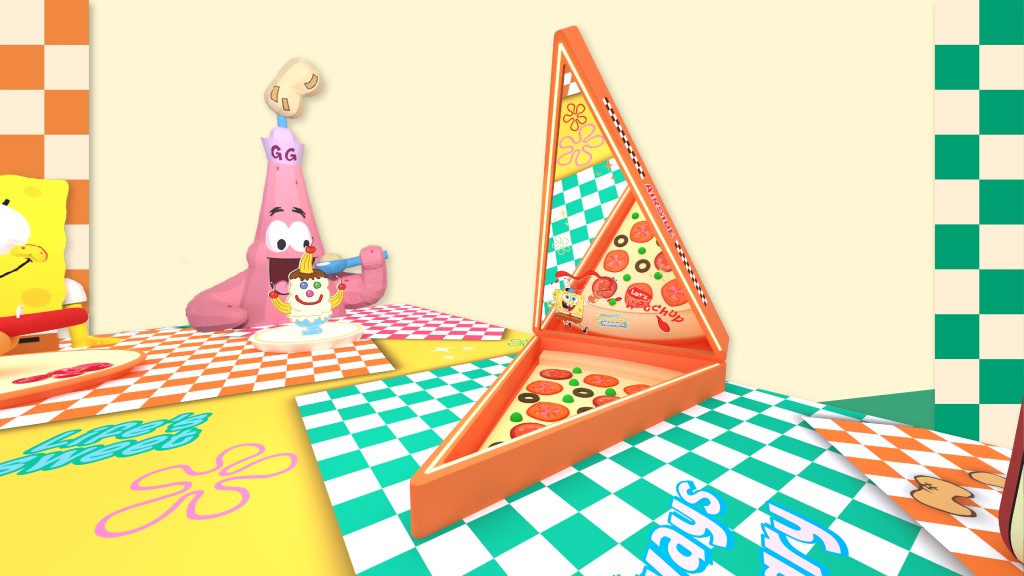 除了巨型吹氣裝置,「 比奇堡滋味派對」場內更特設三大創意打卡位!大家可與派大星分享「巨型蟹堡滋味套餐」,置身超現實的巨大餐盤,被多傻繽紛巨型漢堡和黃金扭紋薯條包圍,大家更可以抱起巨型薯條合照,留下充滿玩味的回憶!來到「海底花生打卡站」,你可以踏進「Sea Peanuts」花生禮盒,與海綿寶寶及派大星合照打卡。最後,亦別錯過到「夢幻PIZZA 盒」鏡面打卡,打開巨大化薄餅盒,躺在鬆脆餅底與餡料造型的軟墊上,配合鏡面反射拍出構圖獨特的「比奇堡美食照」,盡情展現各位的創意!