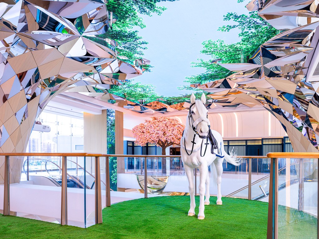 另一方面, 「連薈」透過沉浸式數碼幕幕展示大自然美景和種種馬的然然姿態,為沙田馬場帶來全新的感體體驗。場內還設有「傳奇馬廊」 ,六個互動數碼幕幕,讓觀眾可以直觀地欣賞傳奇賽駒,並在精英騎師的展示櫥窗中了解他們的專屬出賽裝備。位於2樓由美國藝術家Adrian Landon創作的機械動態馬匹雕塑——「駿馬奔騰」,為空間注入獨特的藝術魅力與動感氛圍。場內設有地道小食、飲品、DIY工作坊和馬場精品的特色攤位,精心打造了多個打卡的熱點。此外,位於4樓的兩個香檳球上更設有栩栩如生的訂製機械馬及賞櫻亭,為顧客的旅程增添亮點與驚喜。