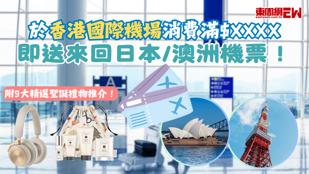 由即日起至2025 年1 月5 日,香港國際機場為「HKairport Rewards」會員呈獻聖誕限定「飛」賞購物禮遇,只要於機場任何店鋪、餐廳及HKairportShop.com機場網上商店每累積消費滿港幣$10,000,即可獲贈來回日本機票一套(可選擇由香港/東京/大阪出發),滿港幣 $15,000 即賞來回澳洲機票一套(可選擇由香港/悉尼/墨爾本出發),不需抽獎,滿額即送!每位會員於推廣期內憑指定累積消費最多可換領兩套來回機票。共提供 8 個不同航線選擇,如換領兩套機票,機票可自由選擇不同航線。