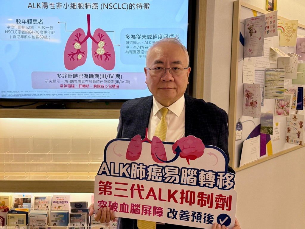 肺癌是本港最常見的癌症及頭號癌症殺手,坊間一直認為吸煙才會患上肺癌,但事實上有些肺癌與基因突變有關,令即使不吸煙及較年輕的人士,也有機會被肺癌「看上」。當中有一種肺癌的患者帶有ALK基因突變,他們常會出現腦轉移,令其生活質素及預後受到嚴重影響,亦有機會縮短存活期。除了化療外,醫學界近年積極研究更有效的治療方案,並推出第三代ALK抑制劑,有望為患者帶來新希望。