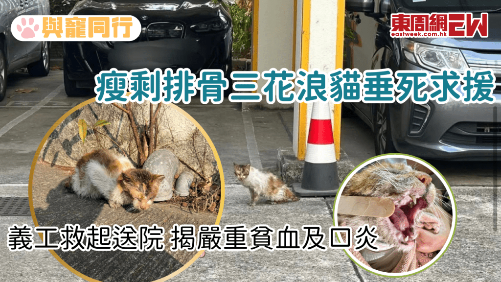 瘦剩排骨三花浪貓垂死求援 義工救起送院揭嚴重貧血及口炎