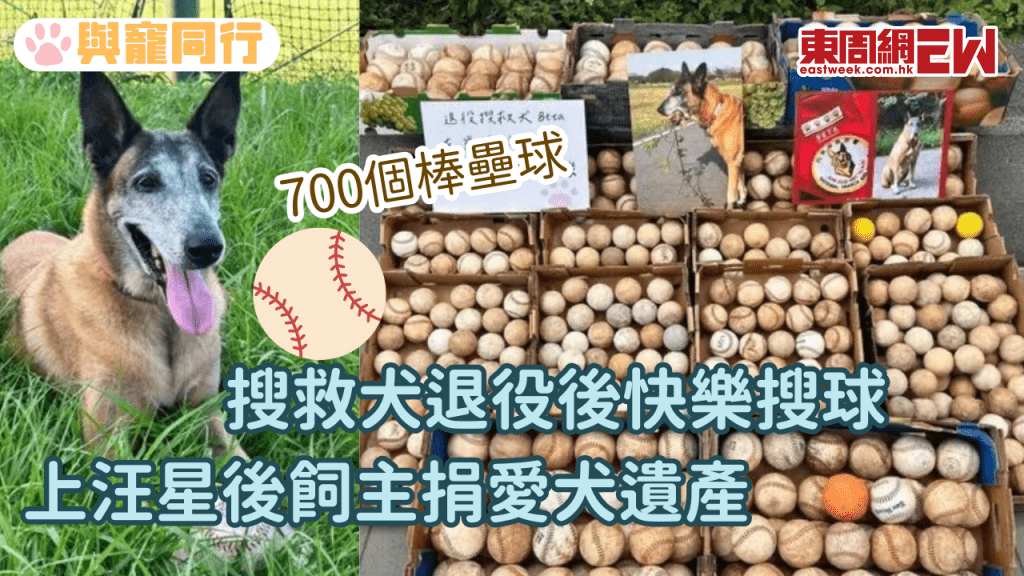 搜救犬退役後快樂搜球 上汪星後飼主捐愛犬遺產700個棒壘球
