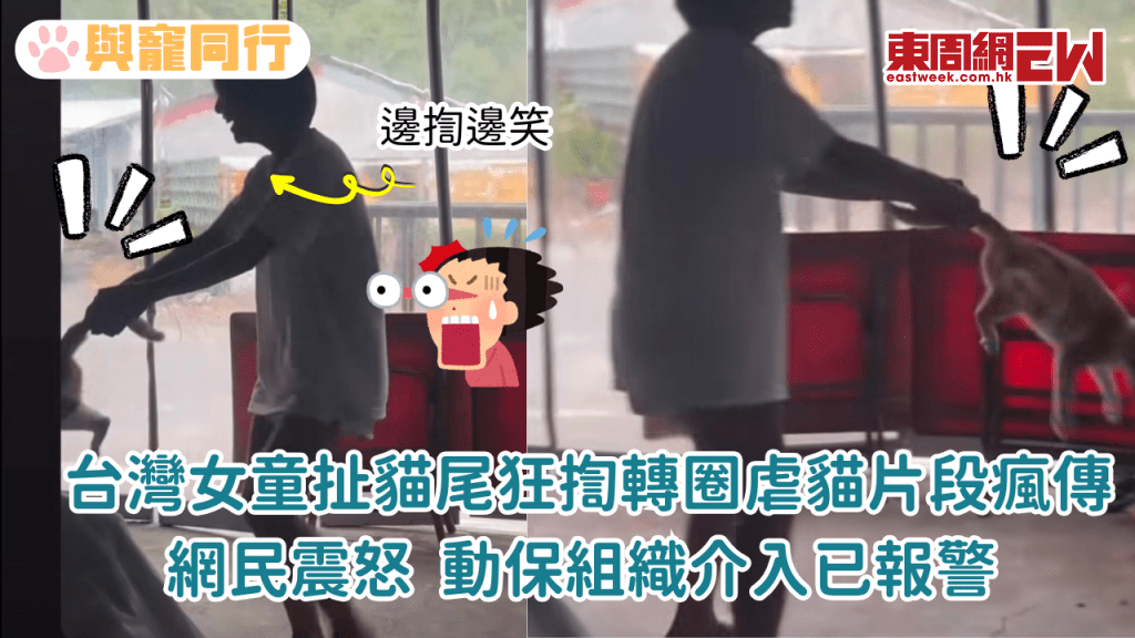 台灣女童扯貓尾狂揈轉圈虐貓片段瘋傳 網民震怒動保組織介入已報警