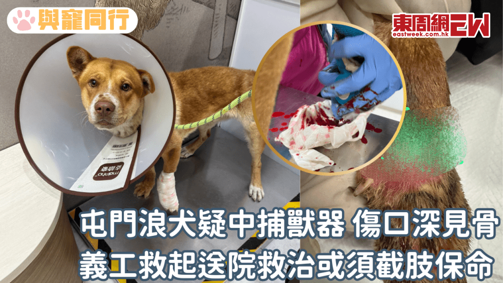 屯門浪犬疑中捕獸器 傷口深見骨 義工救起送院救治或須截肢保命
