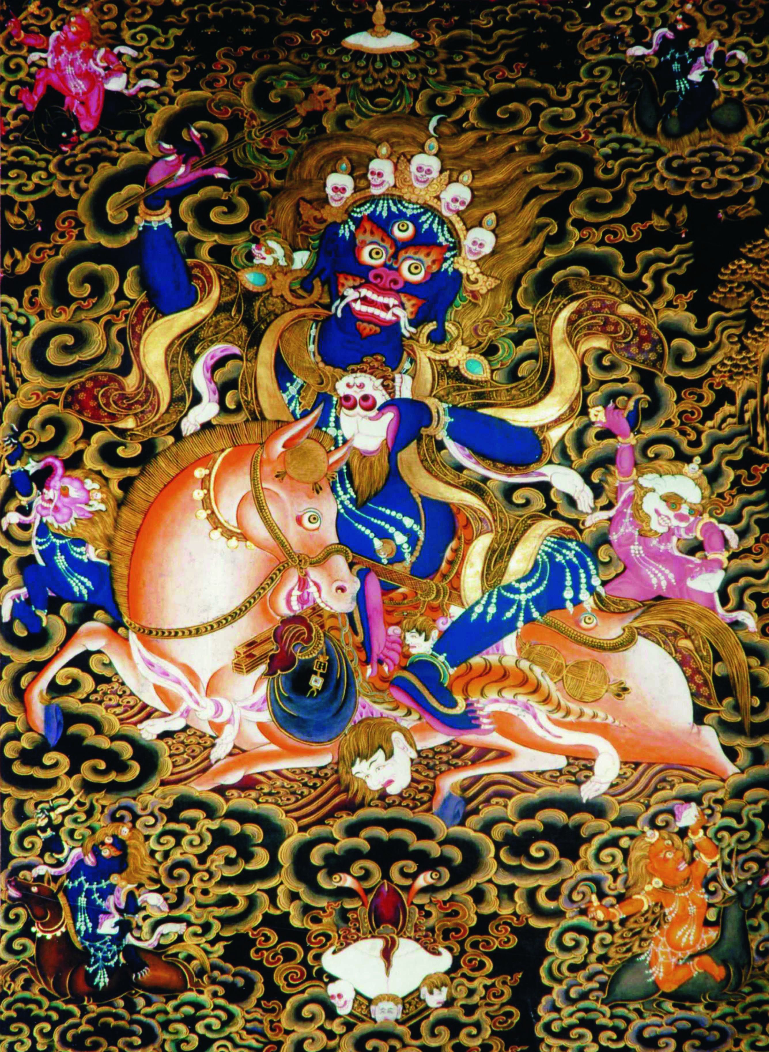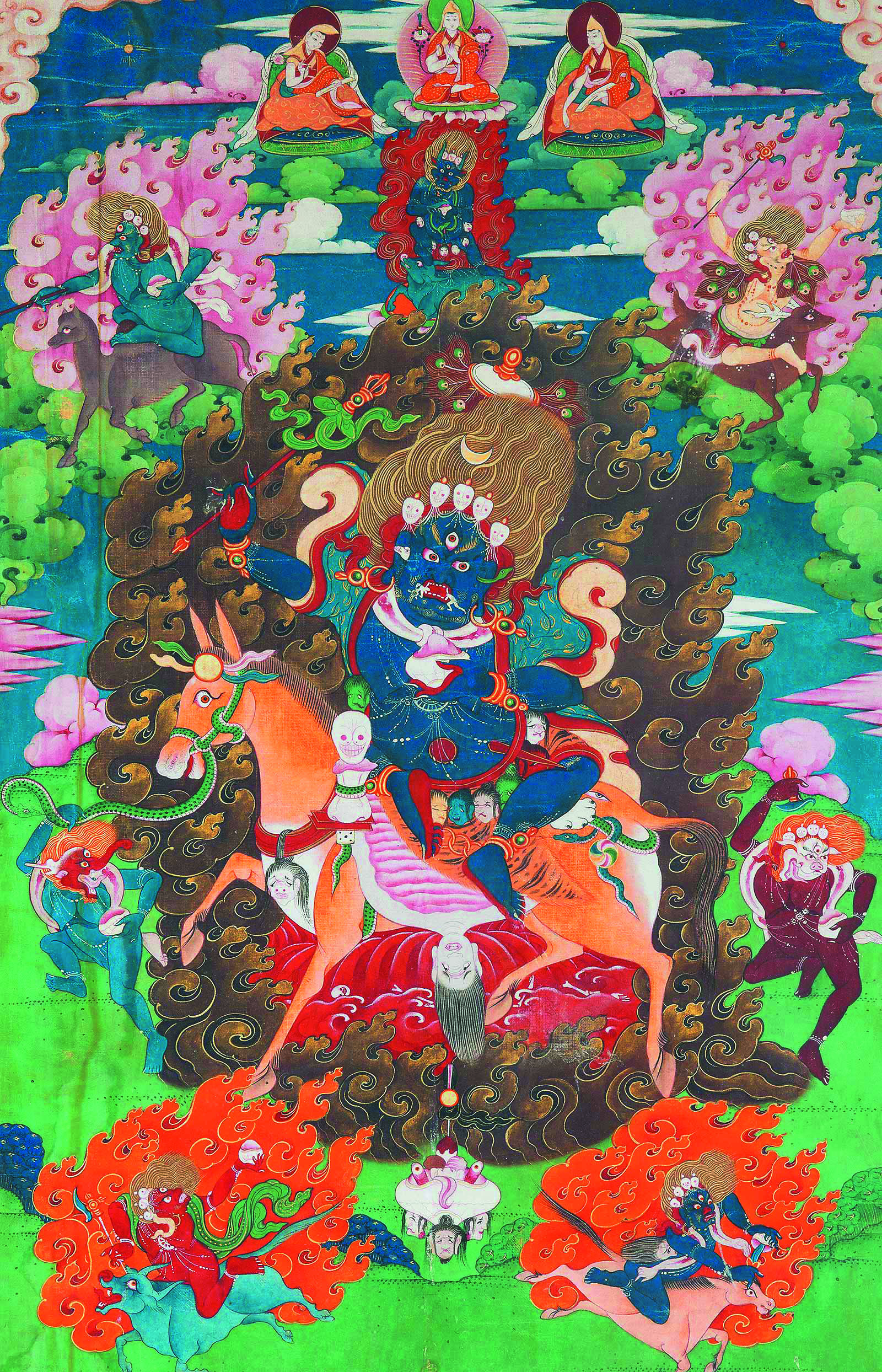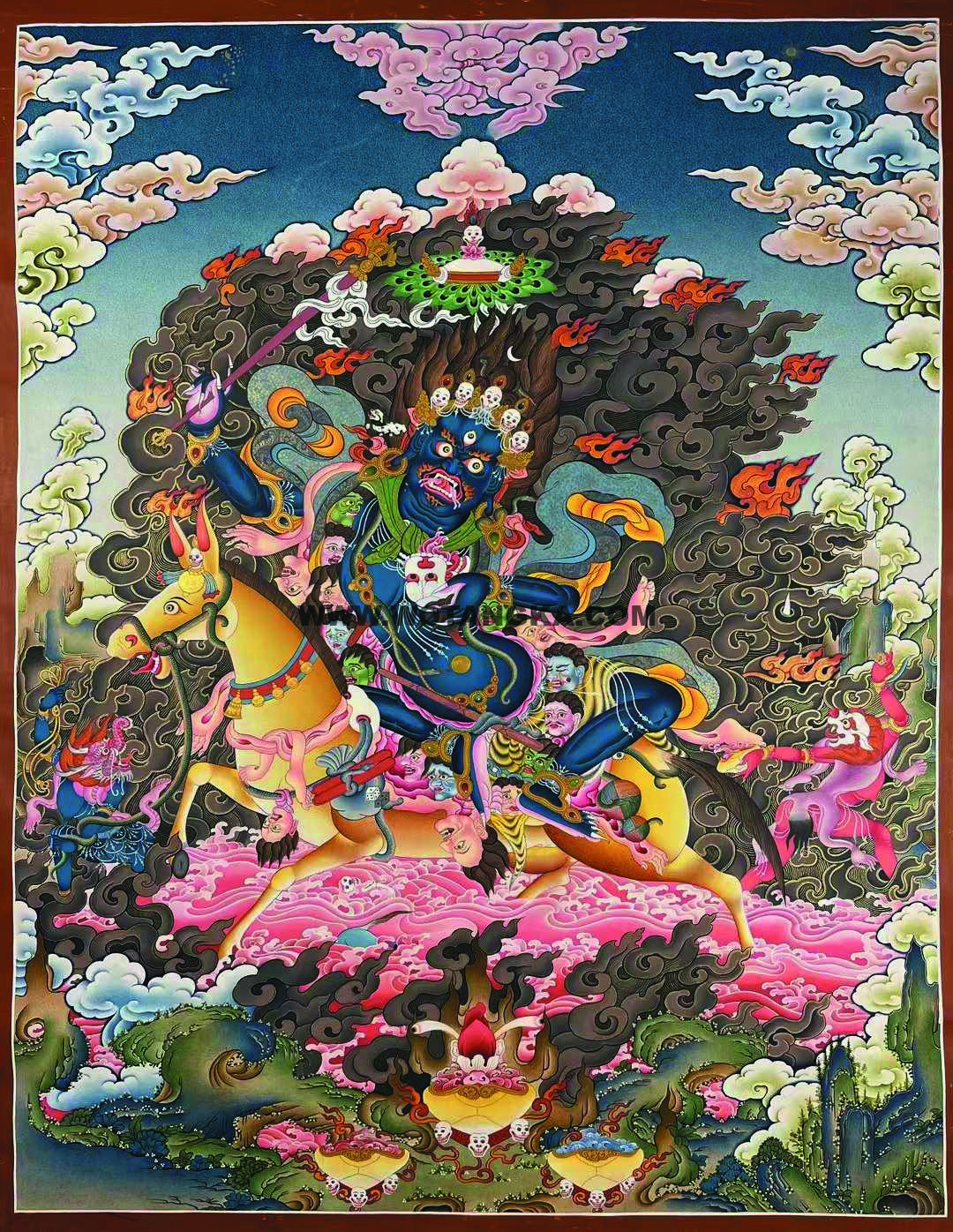 傳說中,世上第一幅唐卡是吐蕃贊普松贊干布親自繪製的吉祥天母,因其在修建大昭寺時護法有功,從而在拉薩地區形成了有關她的專門節日。
