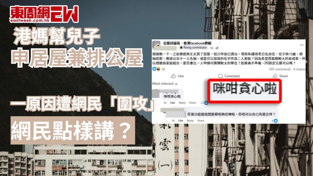 港媽幫兒子申居屋兼排公屋 一原因遭網民「圍攻」 網民點樣講?