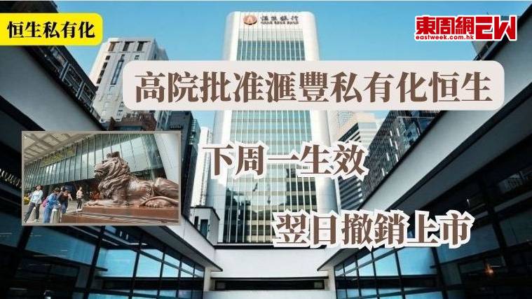 恒生私有化丨高院批准滙豐私有化恒生 下周一生效 翌日撤銷上市