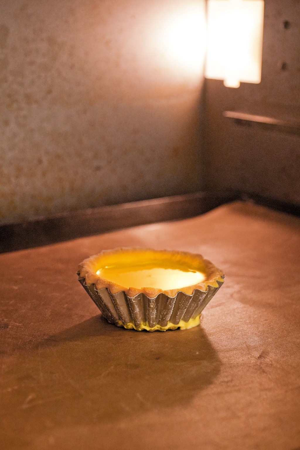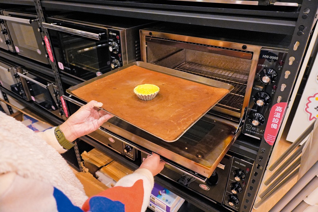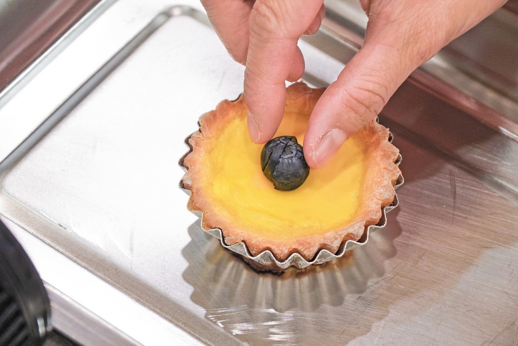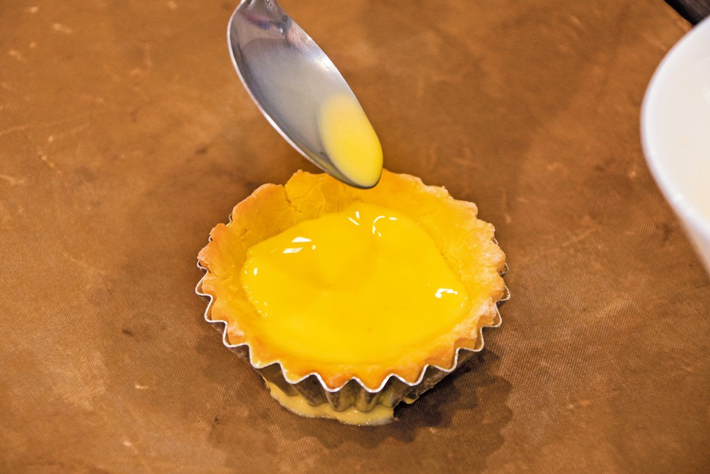步驟5﹕在焗爐取出蛋撻皮,倒入蛋撻液,再以130度焗13分鐘。