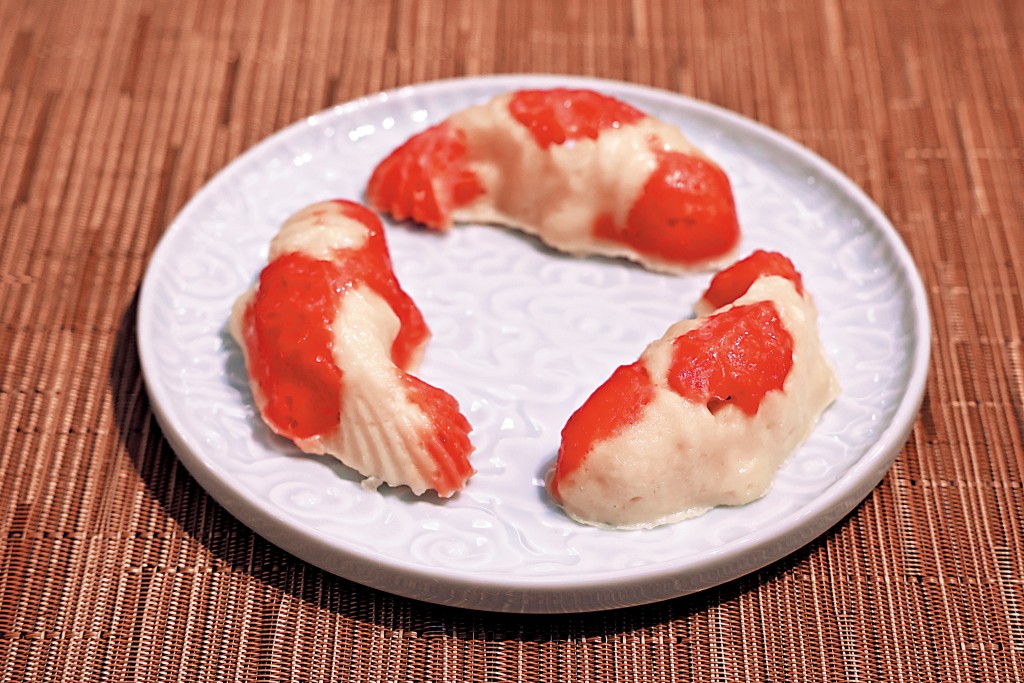 隔水蒸約15至20分鐘,確保內部熟透後,待冷卻便可脫模,精美的鯉魚年糕便大功告成。