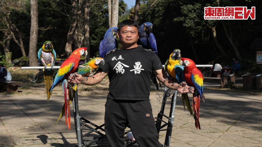 二○一六年成為鸚鵡迷的蟹哥,在訪問當日開着專為鸚鵡外出而設的貨車,籠內的鸚鵡尚未出籠已吸引不少郊遊人士的目光。蟹哥說只要天氣好就會帶鸚鵡外出:「讓牠們親親大自然,始終困籠對牠們健康也不好。」鸚鵡的品種多達三百九十八種,而香港常見的寵物鸚鵡有金剛鸚鵡、鷄尾鸚鵡、葵花鸚鵡、非洲灰鸚鵡等,其中蟹哥說他對金剛鸚鵡情有獨鍾:「年輕的時候已鍾情於金剛鸚鵡,奈何經濟能力有限,及沒有時間照顧牠們。現在退休,所以開始飼養鸚鵡。」蟹哥家中共有十七隻鸚鵡,但只有金剛鸚鵡馬豆和亞馬遜鸚鵡綠豆是購買,其他都是收養,他說:「某些前主人看到鸚鵡咬毛,外觀不漂亮而棄養,亦有些是抱着『人養我養』的心態,結果養了一段時間,覺得牠們聲量大、咬合力強而放棄牠們。這些前主人知道我會帶鸚鵡外出玩,所以願意將鸚鵡交給我,我亦會上載鸚鵡的日常生活到社交平台,讓前主人知道牠們生活安好。」