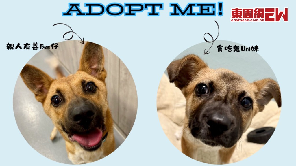 如果想知Ben和Uni有幾似樣,不如親身到青衣中心探訪牠們、與牠們互動。當然最好就是領養牠們,無論單隻領養,或是一次過帶牠們返屋企都可以!