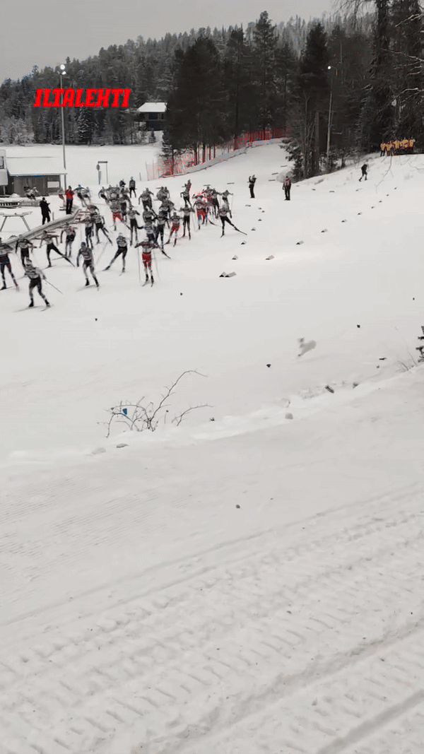 日前芬蘭一場滑雪比賽中,突然亂入了一位「參賽者」,原來是一隻野兔。