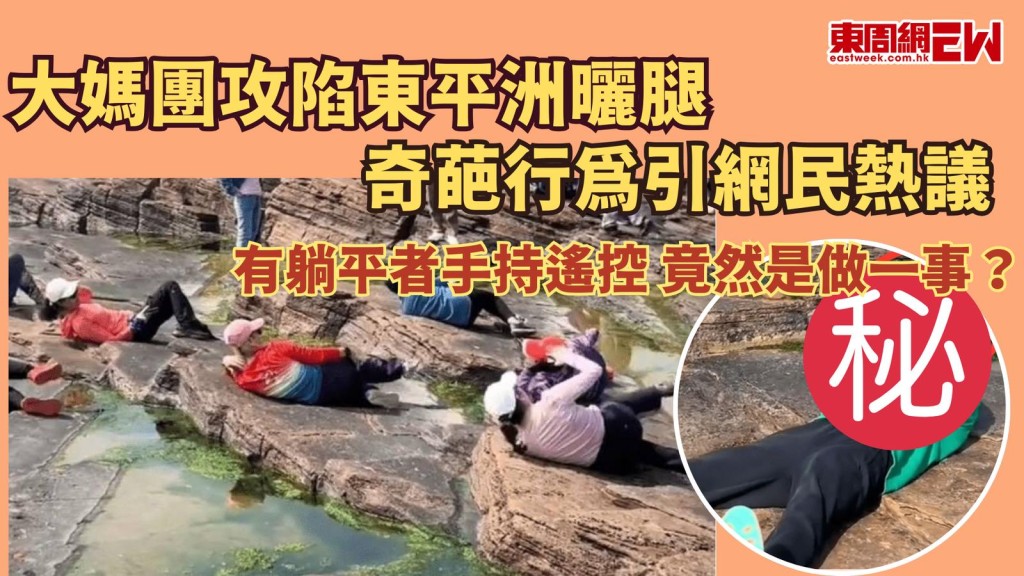 近日,網絡上流傳一段影片,顯示一群大媽在東平洲的「頁岩」上躺平曬腿,形成一幅奇觀,吸引了大量網民的關注和討論。有人戲稱她們為「小抹香鯨,擱淺在沙灘上」,影片在社交平台上迅速瘋傳。