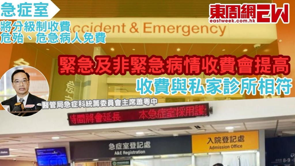 政府即將公布公立醫院的收費檢討方案,據悉急症室將實施分級收費制度,對於危殆和危急病人將全免收費,而對於緊急及非緊急病人的收費則會提高,以與私家診所相符。醫管局急症科統籌委員會主席蕭粵中認為,這一調整將有助於減少「次緊急」和「非緊急」病人的求診量,從而緩解急症室的壓力,並將資源集中於真正需要急救的病人。