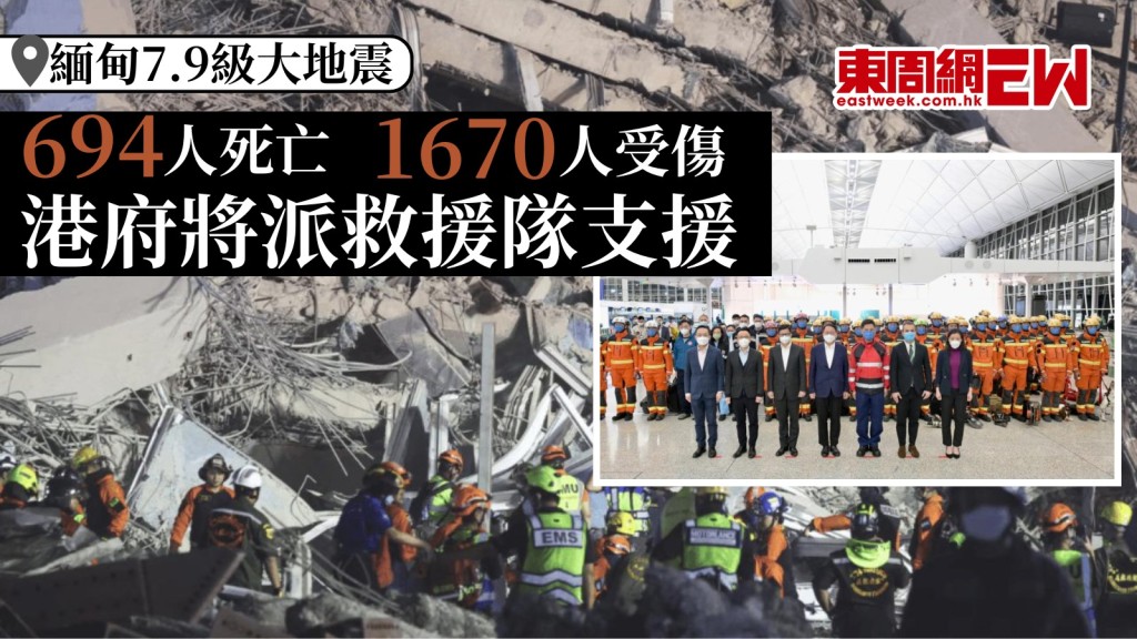緬甸昨日(28日)發生7.9級地震,增至694人死亡1670人受傷,繼中國團隊包機前往緬甸救援,有消息指特區政府亦將派出支援隊前往當地救援,派出的人手與2023年到土耳其的人手相若。