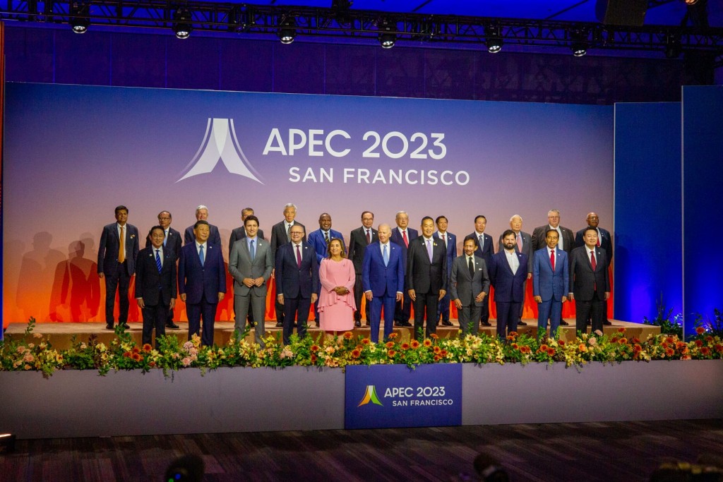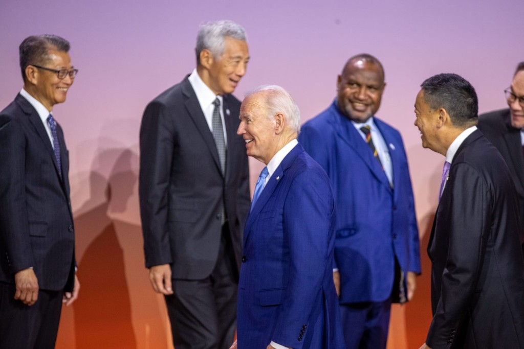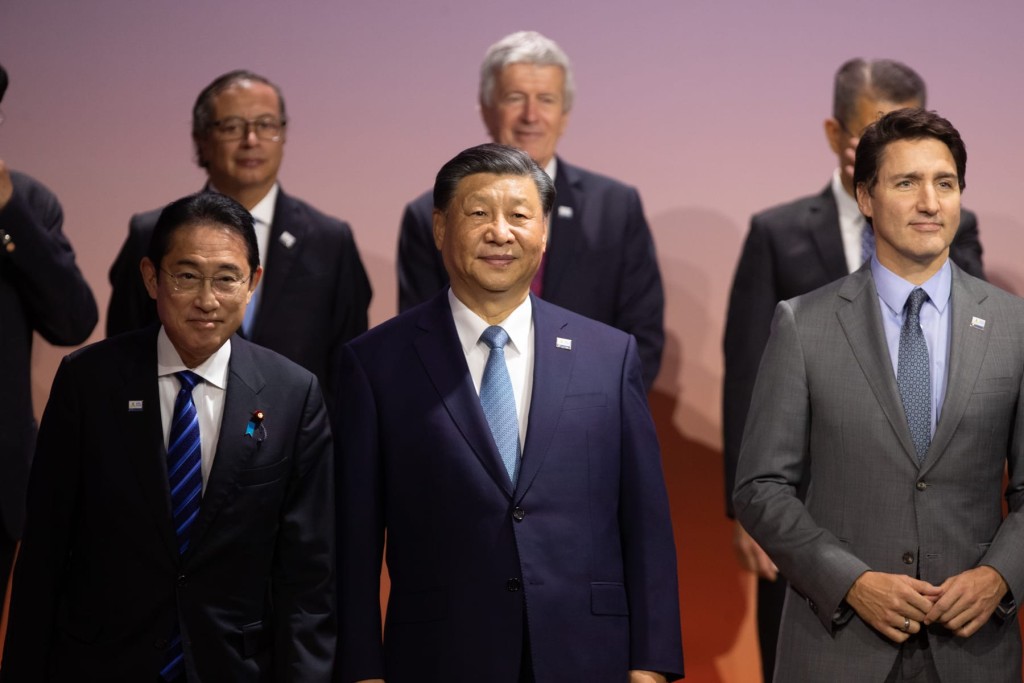 此外,在會議開始前,所有參與會議的領導人或代表進行了集體合照。24人分為前後兩排,前排中央是拜登,習近平則位於他的右方第4個位置,習近平的兩旁分別是杜魯多和岸田文雄。而陳茂波站在習近平的左後方,旁邊是新加坡總理李顯龍。