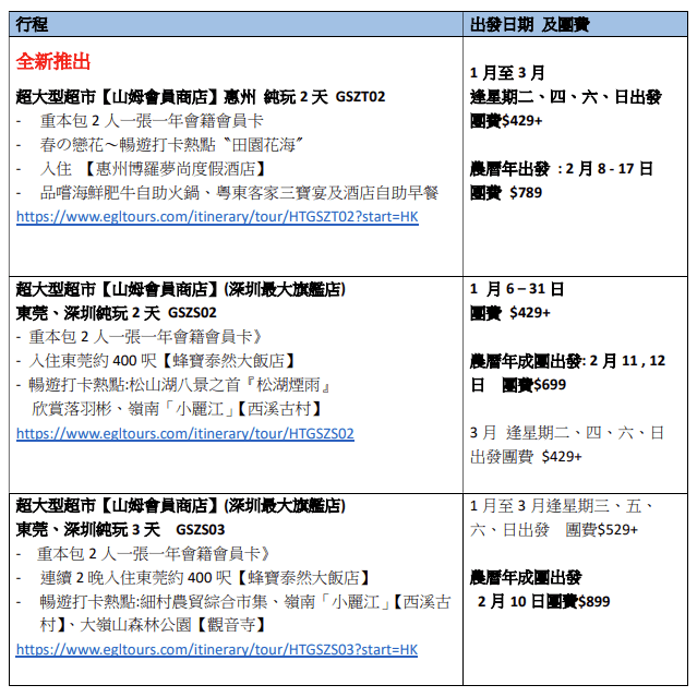 東瀛遊執行董事禤國全表示,不少市民正預備辦年貨,自上周推深圳山姆超市團僅數天,已超過3000位客人報名,目前1月份每日兩團、合共超過50團已成行,且接近全額爆滿。現再度加推1月出發惠州2天山姆掃貨團,團費同樣為429元。