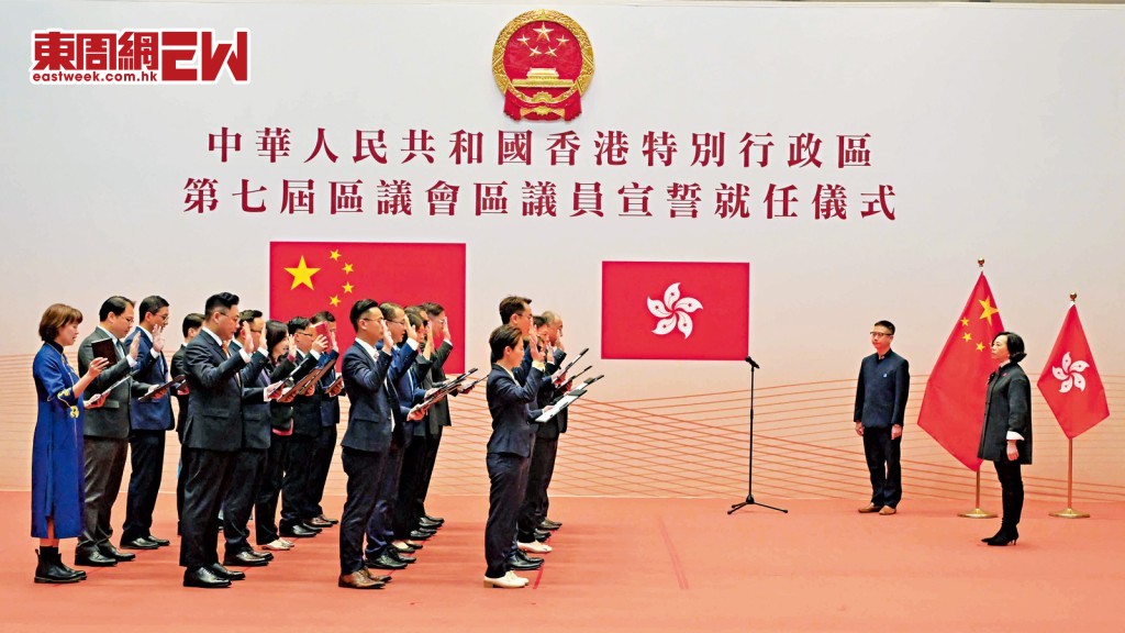 全新架構組成的新一屆區議會在本周一(一月一日)正式成立,四百七十位區議員亦同日於政府總部內,在民青局局長麥美娟監誓下分十八區宣誓就任。