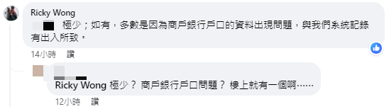 王維基昨在帖文中留言回應稱了解到相關問題,並索取有關商戶編號以了解事件。他估計多數是因為商戶銀行戶口的資料出現問題,與公司系統記錄有出入所致。至於有網民留言稱「大家都驚餐懵」,王維基回應稱:「驚?我們年中公布的財務報表,有10億現金和流動資產。」