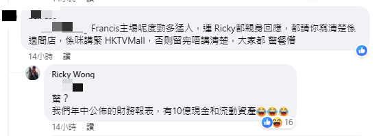 香港科技探索(1137)旗下網購平台HKTVmall的FB專頁近日被洗版,多名自稱是供應商的網民留言未有如期收到1月的貨款,並指平台單方面更改合約續約日期,致使商戶在不知情下被自行續約。HKTVmall創辦人王維基昨日(23日)回應時強調集團財務穩健,年中公布的財務報表顯示有10億元現金和流動資產。