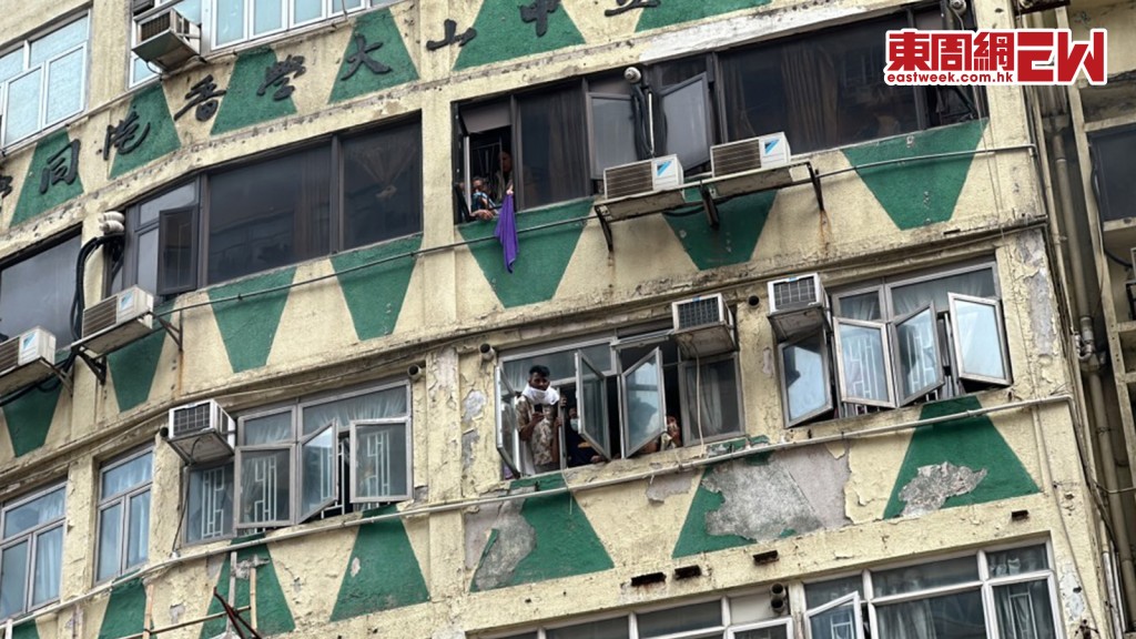 大火吸引了不少人關注和圍觀,有隔壁地盤工人和一名剛巧路過的休班民安隊隊員見狀,更隨即出手協助救人。據了解,有居民已逃出大廈,也有居民抱着小孩在大廈後巷簷篷求救,但因大廈和地盤之間被鐵絲網阻隔,而無法安全逃離。當時民安隊隊員周先生剛好下班路過,聽到有呼救聲,抬頭便見到5名成人手抱2名小童站在大廈後巷簷篷求救。