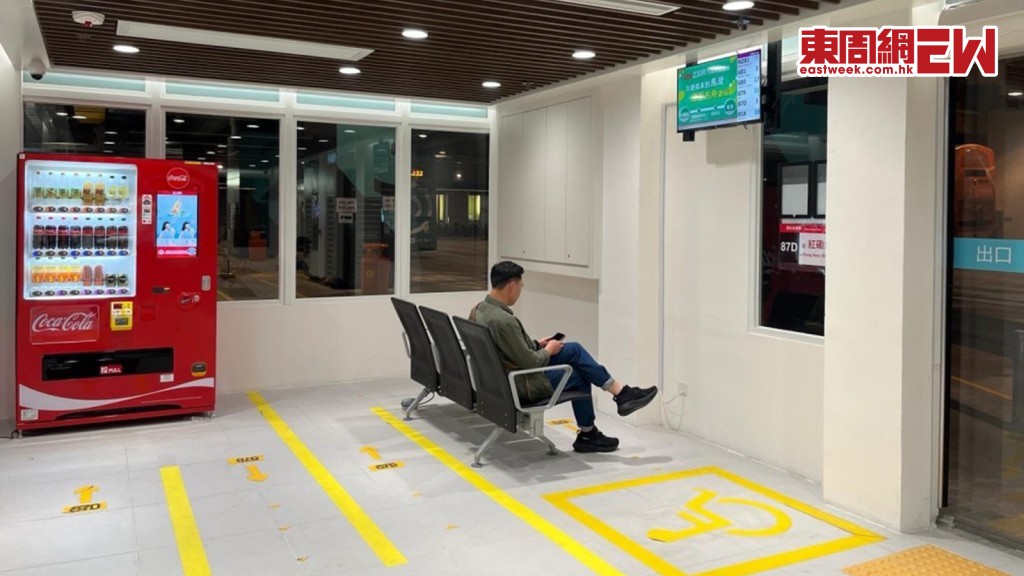 林世雄表示,新候車室除了裝設空調及座椅外,亦設有飲品自動販賣機和手機充電設施,讓乘客得時同時為自己與手機「叉電急救」,為接下來的車程做好準備。候車室還設有巴士實時到站時間顯示屏及乘客資訊顯示板,為乘客提供下班車的預計到達時間,乘客也可使用「香港出行易」程式方便快捷地搜尋前往不同地點的各種出行方式與相關公共交通路線。