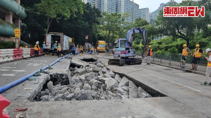 昨日上午樂富鳳舞街在富美街和杏林街之間有路面下陷。多名工人立即趕到現場進行修復工作,坑洞中有積水。附近停放了一部鑿路機,周圍的路面上散落著鋼筋和瓦礫。目前,路面下陷的原因仍在調查中。渠務署在社交網站上表示,他們正在全力進行修復工作,希望能在周四(7月4日)凌晨進行分階段的重新開放。