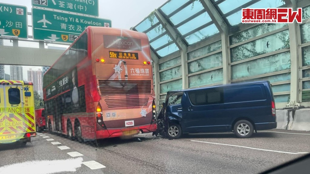 據了解,事故疑因電單車跣胎引發,導致尾隨的4輛車接連追撞。從網上流出車Cam影片可見,事發時九巴正沿屯門公路中線行駛,途中亮起死火燈,鄰線快線上1輛貨Van駛至,快線前面亦有車輛停下,貨Van司機於是扭軚閃避,但收掣不及,車頭撞向中線上九巴的右邊車尾。