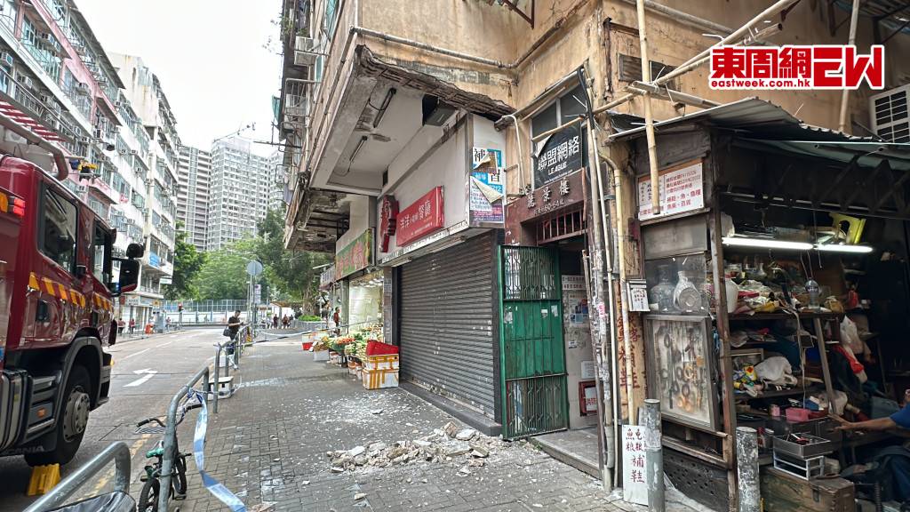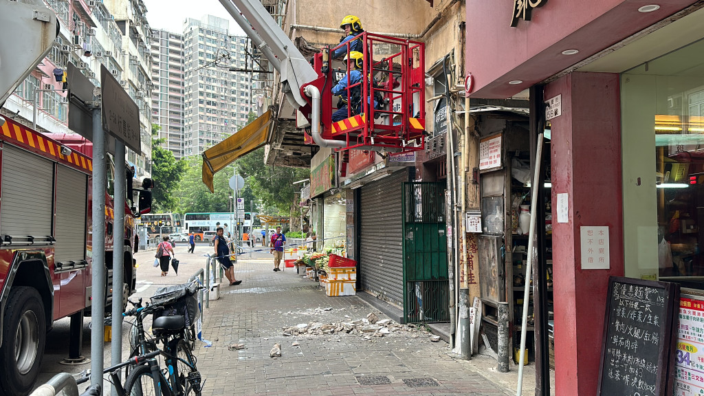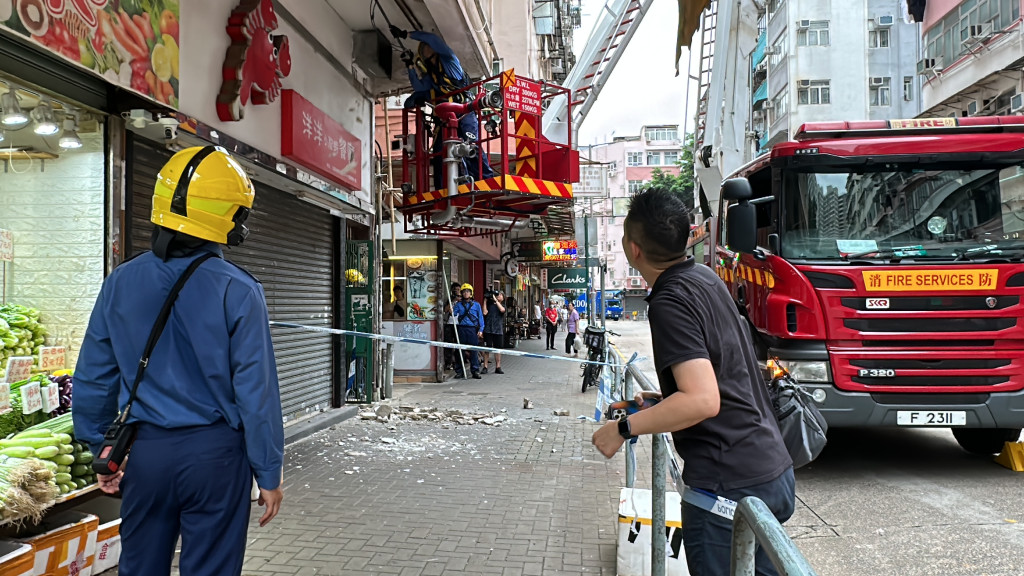 新蒲崗衍慶街60號的麗景樓發生一宗石屎剝落事故,導致行人路上有大量石屎堆積。早上8時17分,有路人報案後,消防隊到場使用升降梯移除可能墮下的危險石屎塊。同時,屋宇署的人員也前往現場檢查建築結構的安全性。事故沒有造成任何人受傷。
