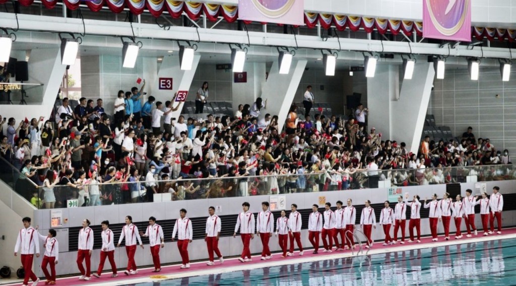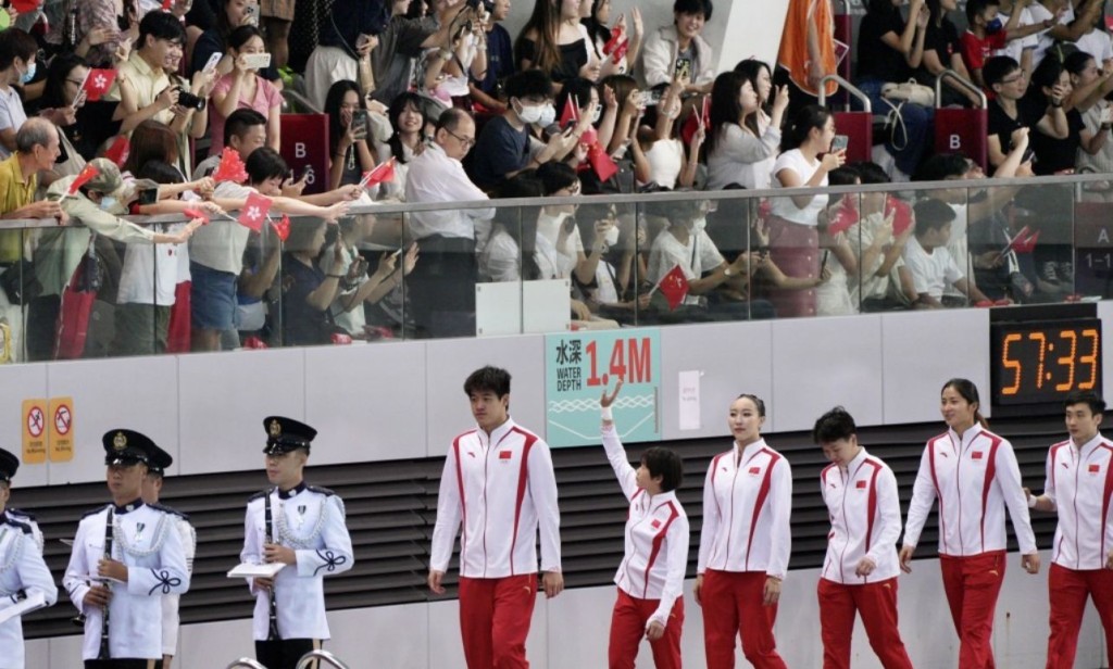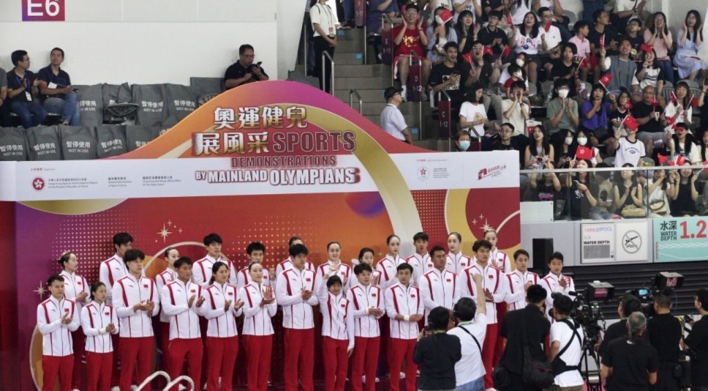 巴黎奧運國家隊代今天(31日)來港第三天,他們進行2場示範,分別是在伊利沙伯體育館舉行的羽毛球、體操及乒乓球示範表演,以及於維園游泳池舉行的跳水及游泳示範表演,其後代表團將離港,前赴澳門訪問。