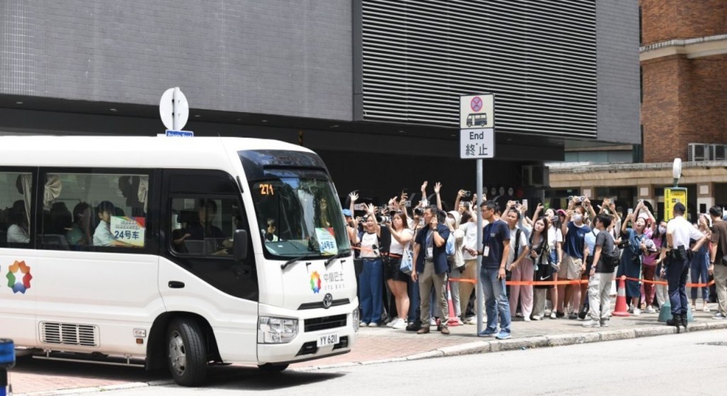 上午約11點半,代表團乘車離開校園,不少市民和遊客在門外等候,運動員上車前向大家揮手示意,引發一陣尖叫歡呼,不少人高呼「孫穎莎」、「莎莎」,亦有市民為運動員加油。