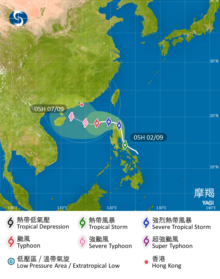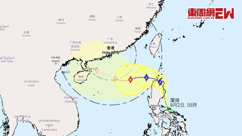 根據天文台對路徑和強度的預測,「摩羯」將於周二至周三期間進入南海並持續增強。預計周五將以強颱風的強度進入香港400公里範圍內,並在香港南部掠過。