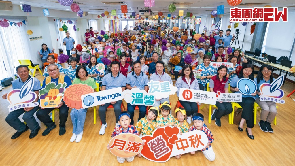 煤氣公司今年再度攜手房協,連續第四年於房協位於堅尼地城的出租屋邨觀龍樓舉辦「温馨•友里賀中秋」活動,今年特別希望在中秋佳節推廣「健康飲食」及宣揚關愛鄰里的信息,因此活動現場的攤位遊戲均以「健康飲食」為主題。在「煤氣温馨義工隊」及「房協友里」義工的協助下,參加者於遊戲中學到很多關注健康飲食及關心鄰里的資訊,並收獲了滿滿的遊戲獎品。煤氣公司常務董事黃維義和房協行政總裁兼執行總幹事陳欽勉亦出席活動,參與遊戲,樂也融融。活動開始時先有房協樂民新村居民為大家帶來跨代舞表演「玩轉老朋友」帶動氣氛,其後各嘉賓上台進行燈籠揭幕儀式。黃維義致辭時表示,很高興煤氣公司與房協在很多社區工作都合作無間,彼此的共同目標都是為大家建立一個温馨的家,「今年的中秋活動主題與飲食有關,這正是煤氣公司的強項之一,希望各位長者都能夠『食得健康、活得有營』。」陳欽勉亦表示:「房協非常開心與煤氣公司合作,期望透過彼此的優秀義工隊伍將『温馨』和『友里』兩大理念傳遞出去。」他更盛讚煤氣公司近年推出的智慧型產品能更全面保障用戶,尤其是長者的家居安全,希望未來大家都有更多具前瞻性、創新的服務及產品予大家。二人其後與在場參加者大玩猜燈謎遊戲,明星義工劉錫賢和蘇恩磁即場獻唱金曲,最後義工們更送上精心準備的中秋福袋,場面温馨熱鬧。