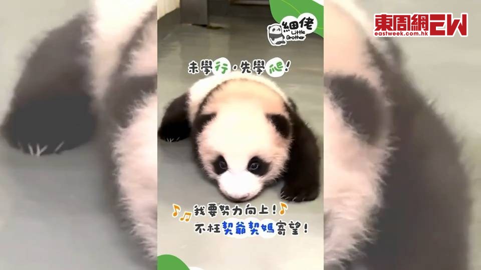 香港的兩隻港產大熊貓龍鳳胎即將迎來「百日誕」,海洋公園昨天在社交媒體上分享了大熊貓「細佬」的成長點滴。影片中,已經長出黑白毛髮的「細佬」正在努力學爬,爬幾步後似乎累了,停下來休息一下,然後又繼續爬行。帖文形容「細佬」學爬的模樣令人感到莫名的感動。