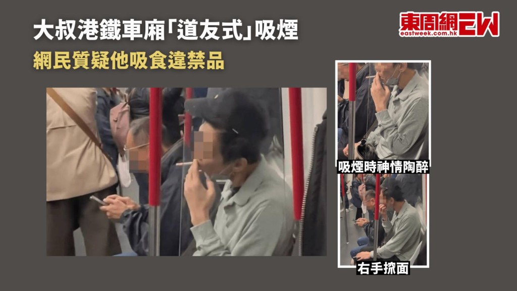 最近一段影片在網上熱傳,影片中一名大叔在港鐵車廂內公然吸煙,行為被網民戲稱為「道友式吸食」。他悠然自得地抽著香煙,吐出煙霧,面露享受的神情,令在場乘客的反應成為討論焦點。